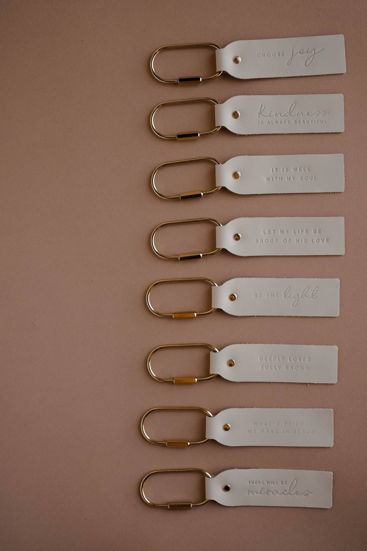 Genuine Leather - Blonde Color 2" Carabiner 4" Wide Stamped Leather Fob