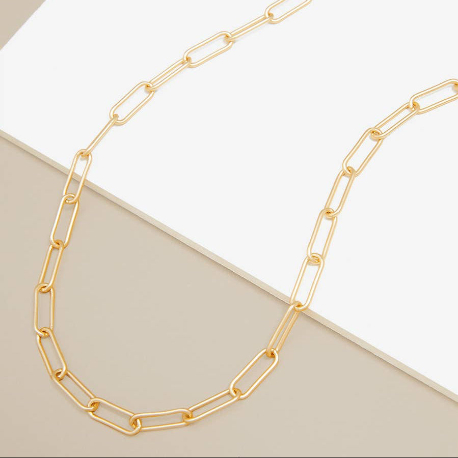 Classic Paperclip Link Necklace Matte Gold