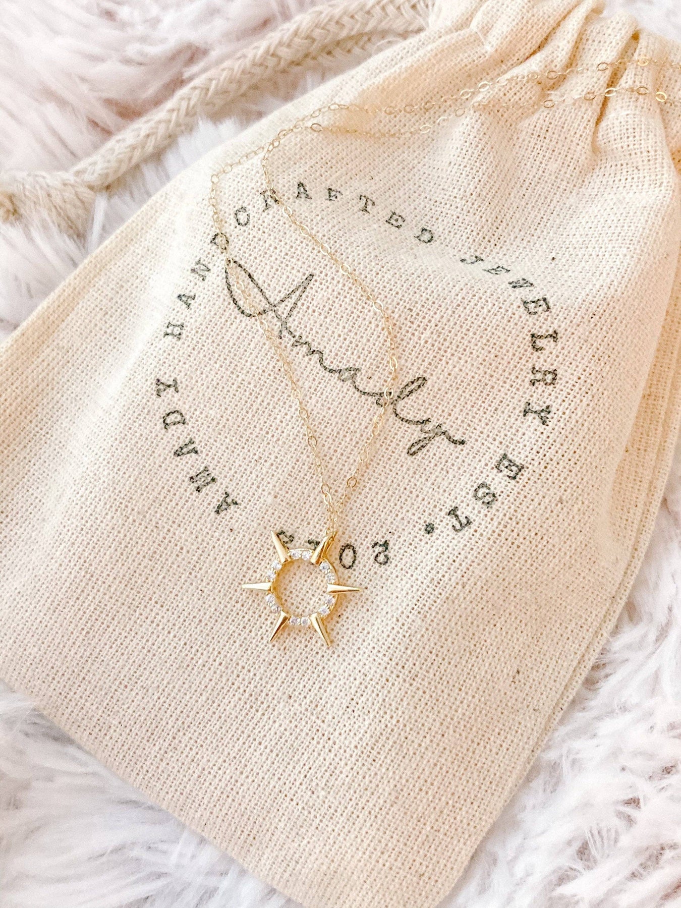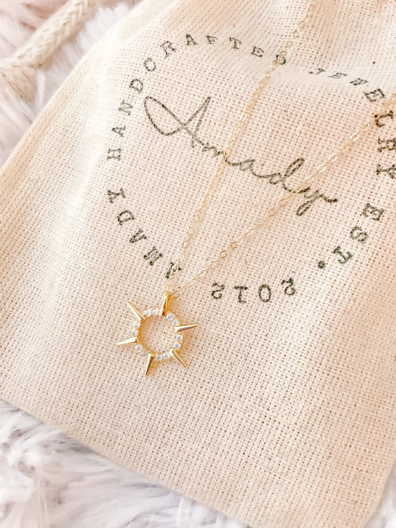 ♡ Cute spiky sun charm pendant attached to a 18k gold filled dainty chain.