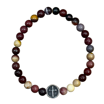 Antique Silver Circle Gothic Cross Mookite 6mm Bracelet