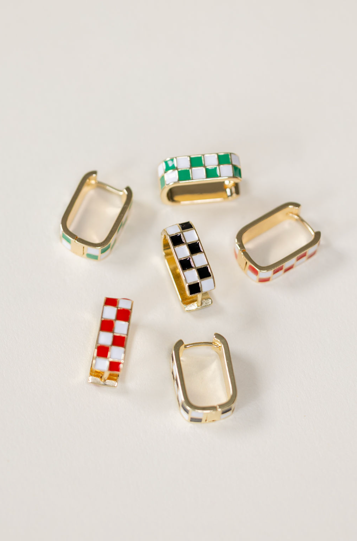 Get into the holiday spirit with these adorable gold huggie hoop earrings! Featuring fun checkered enamel designs, you can rock either the cheerful green and white combo or go classic with red and white. These little gems are perfect for spreading festive vibes at parties, family dinners, or just because you want to feel merry.