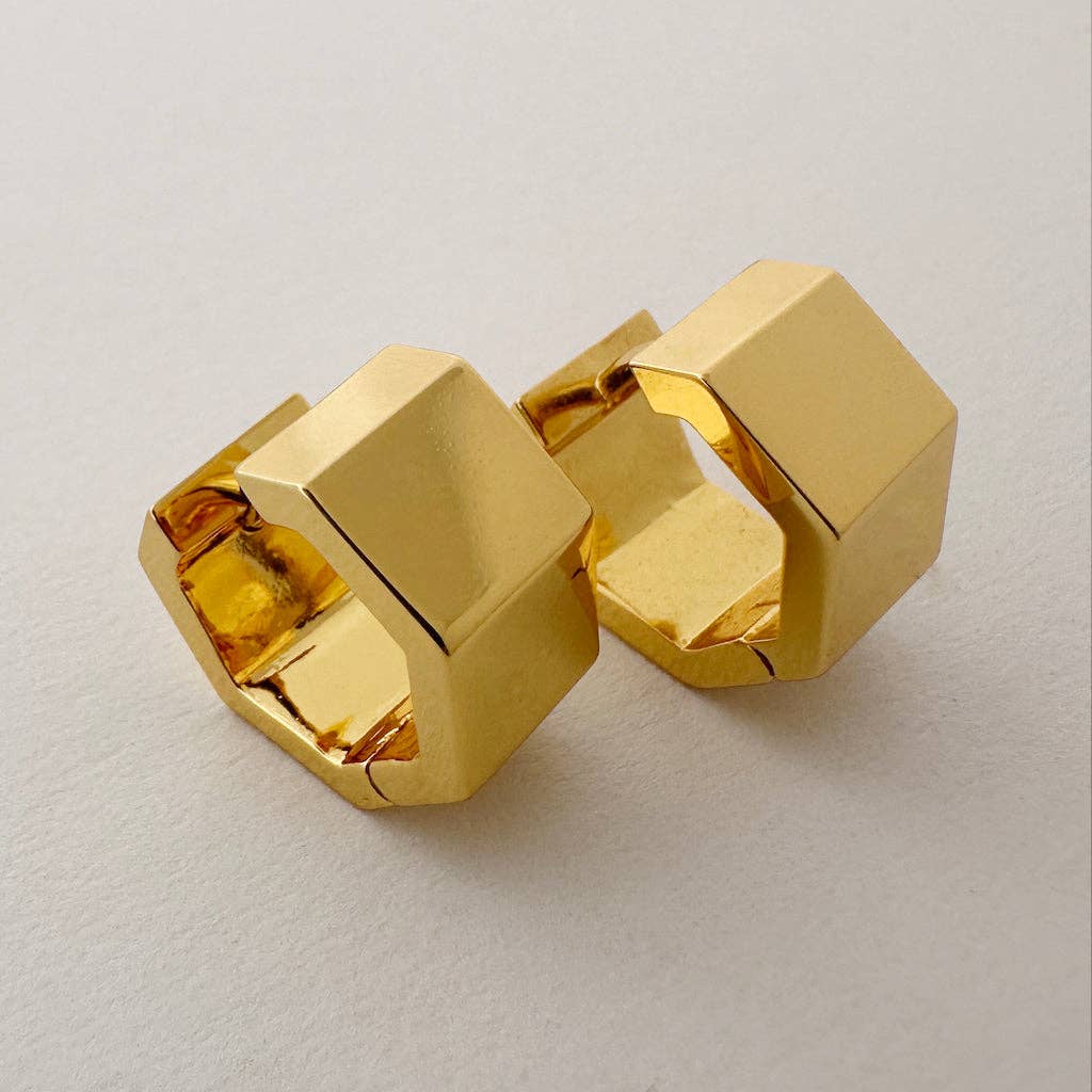 Meet your new go-to hoops. Our Hexagon Huggies bring a modern twist to a classic style with their sleek geometric shape. Comfortable and lightweight, they’re designed for all-day wear and pair effortlessly with everything from casual looks to dressed-up layers. At 11 mm tall and 7 mm thick, they’re just the right size to make a statement while still staying subtle enough for everyday.