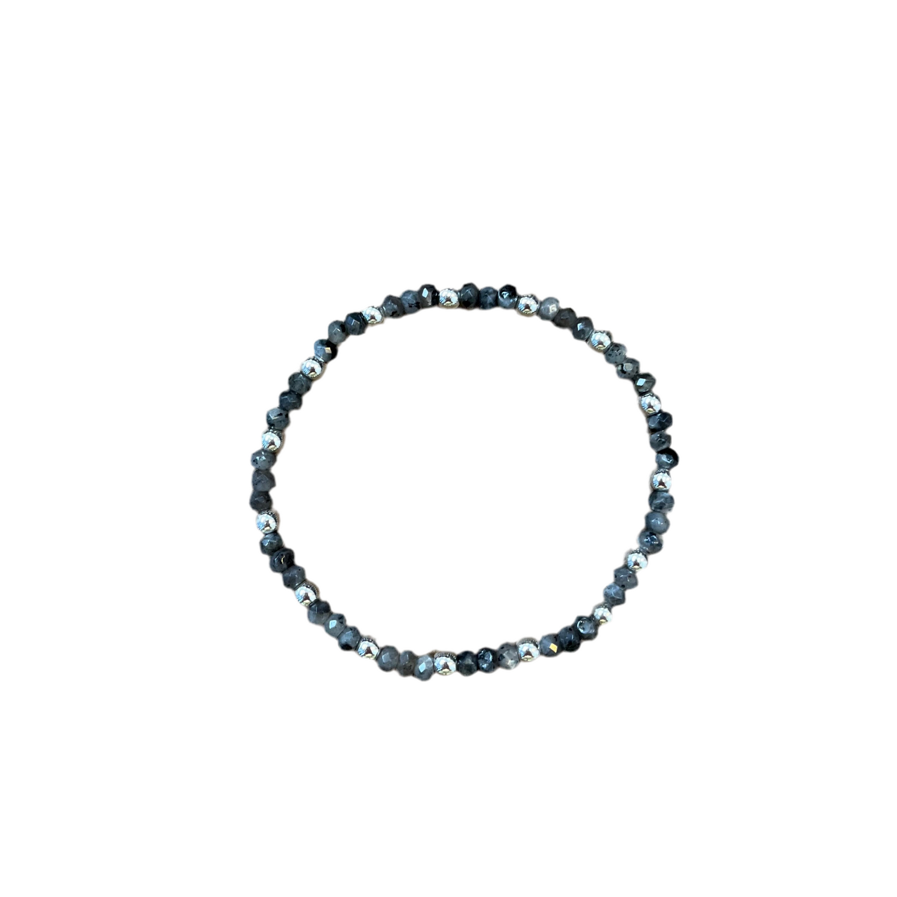Add a touch of whimsy to your everyday look with our Black Dot Jasper Silver Pixie 3mm bracelet. Its dainty design and neutral colors make it perfect for any occasion. Embrace your playful side and turn heads with this unique piece!