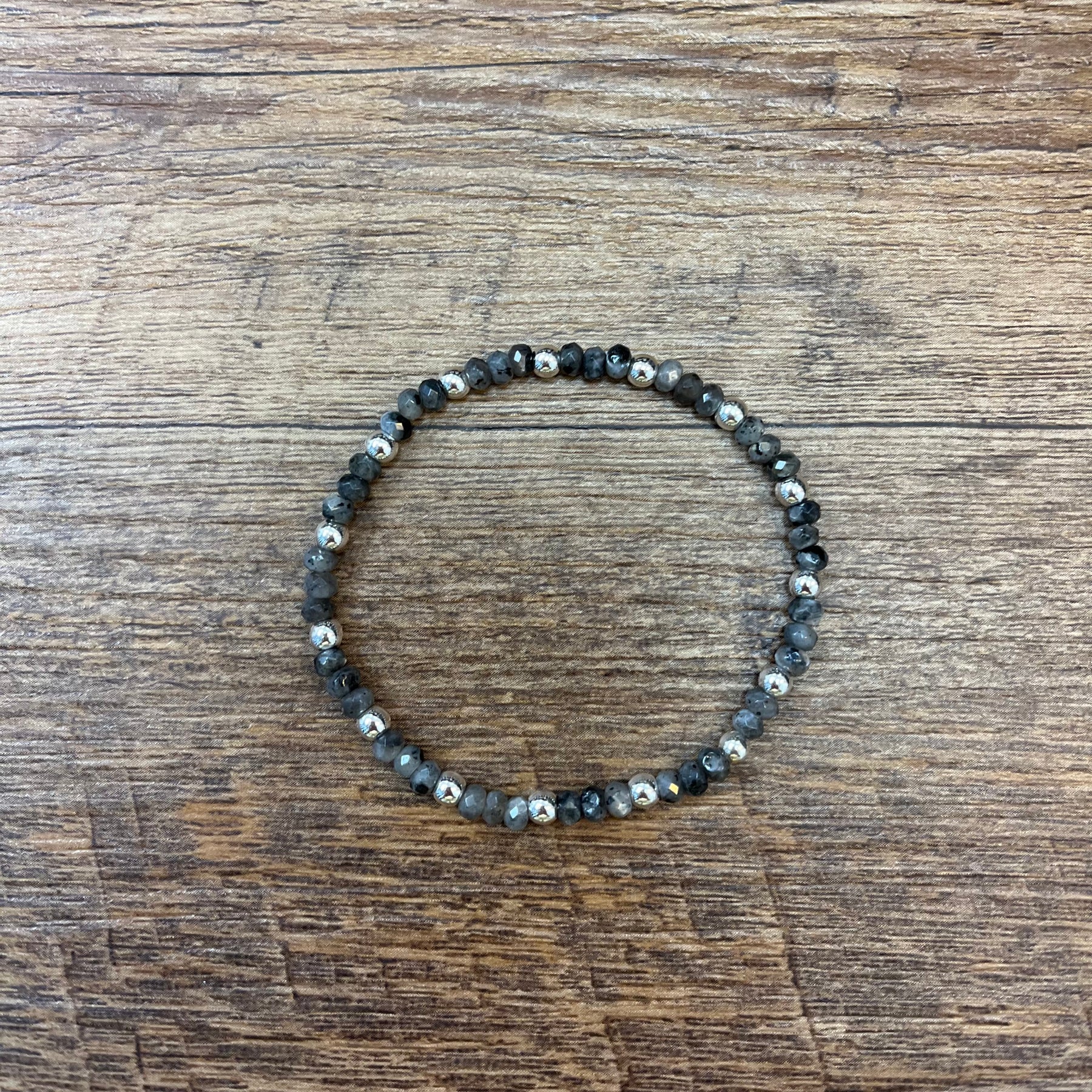 Black Dot Jasper Silver Pixie 3mm Bracelet