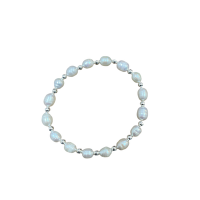 Gold Cross Charm White Pearl 8mm Blessing Bracelet Large