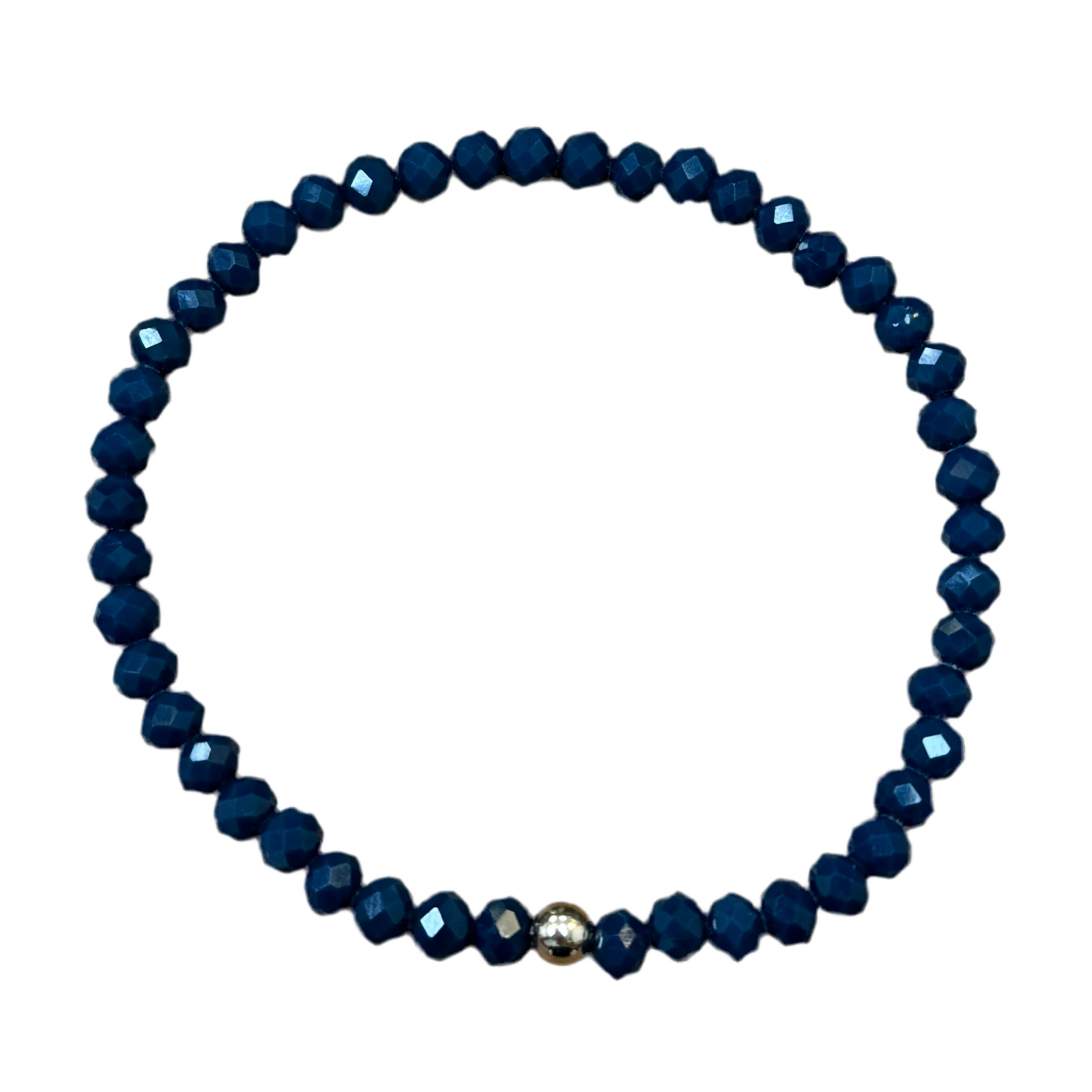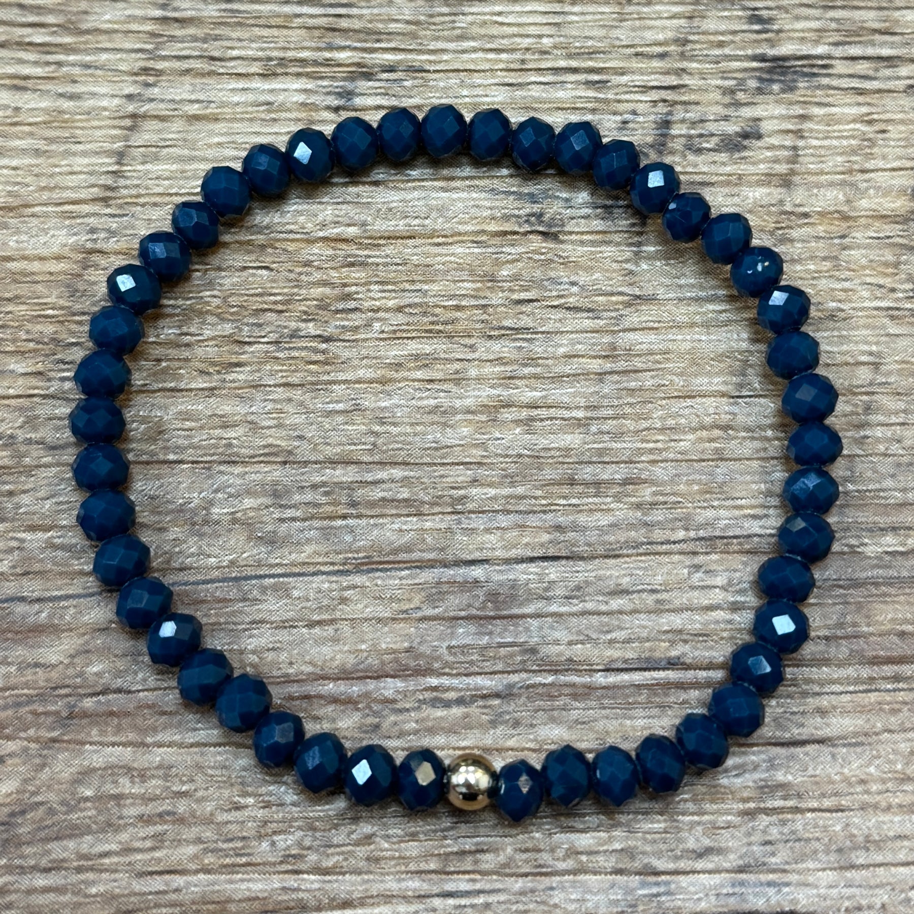 This Warm Navy Faceted Rondelle 4mm Bracelet is a true stunner! With its unique faceted design and gorgeous navy hue, it's the perfect accessory for any outfit. Plus, the color is universally flattering and adds a touch of elegance to any look. Don't miss out on this beauty (seriously, don't!).