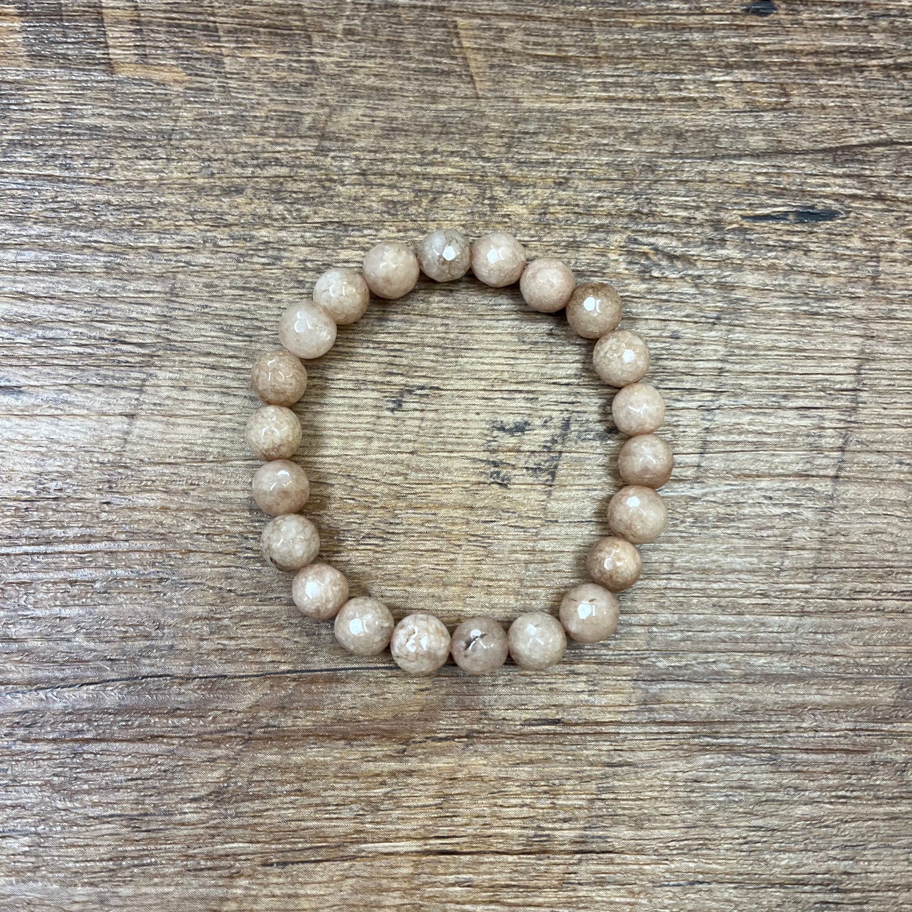 This Tawny Jade Faceted 8mm Bracelet is a must-have for any jewelry collection with its basic neutral tan color. A bead that is easy to add an any day basic stack or a vibrant one!