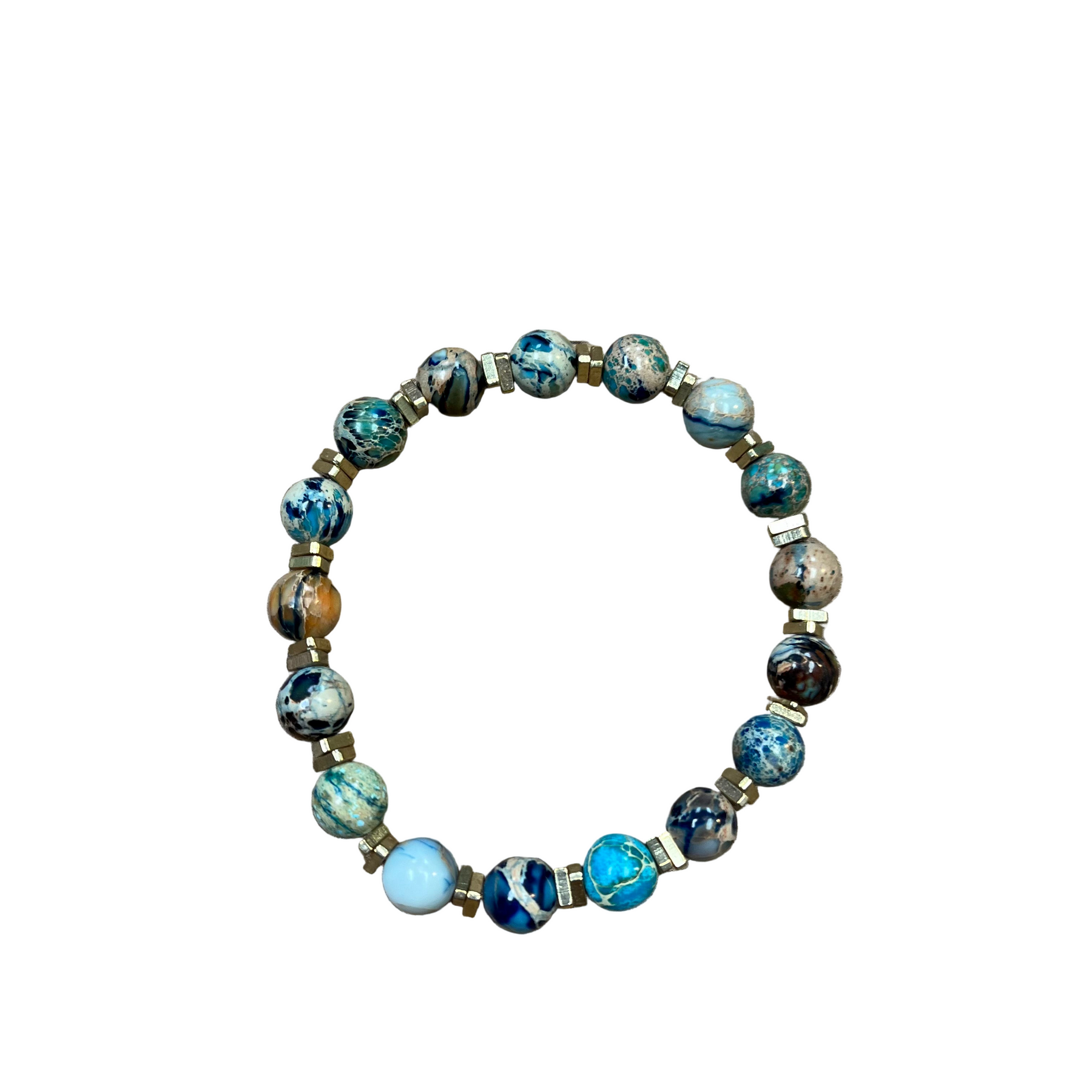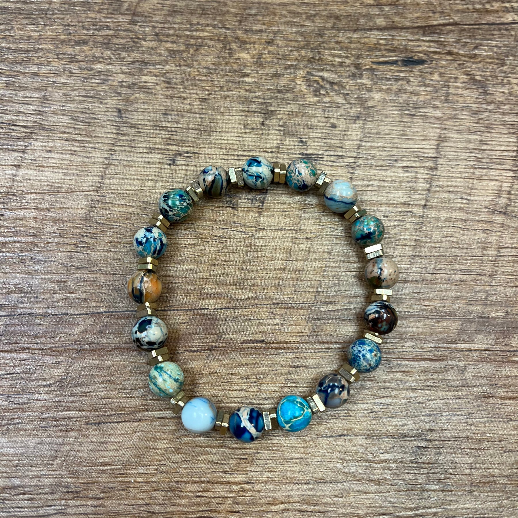 Add a pop of color to your everyday look with our Aster Gold Triangle Spacer Jasper 8mm Bracelet! Made with natural jasper beads, this bracelet is a good way to elevate your everyday basic stack.